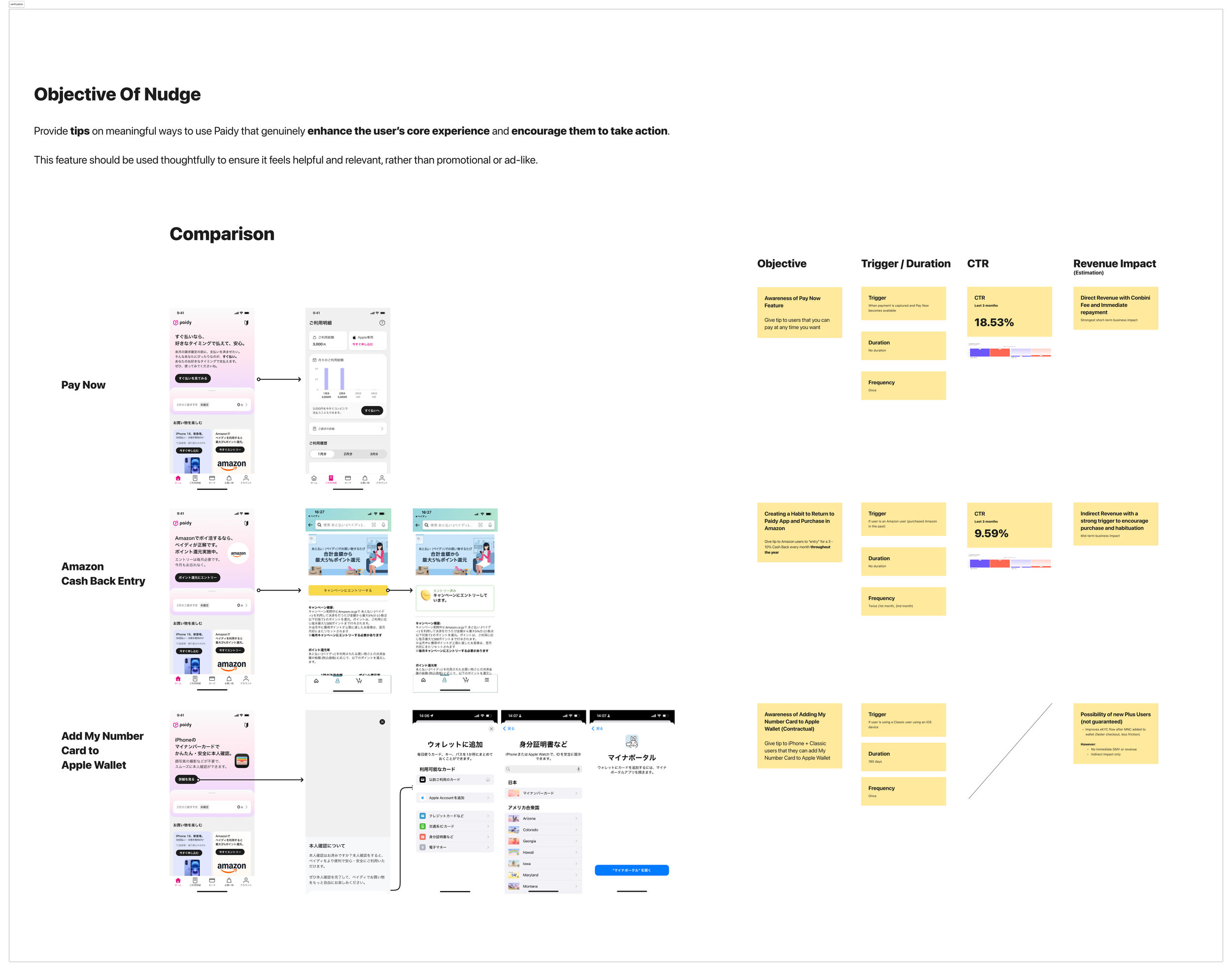 As part of Apple’s contract, Paidy is required to promote adding MNC to Apple Wallet and introduce Apple IDV as a new eKYC method, but adoption remains low due to competing nudges and misalignment with users’ immediate intent, creating a gap between business goals and user behavior.